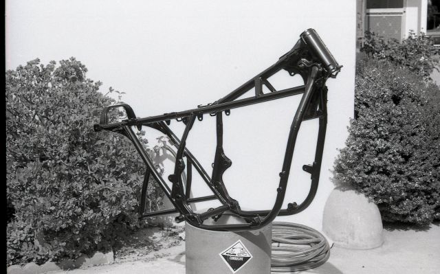 As long as the engine was out for chrome I might as well paint the frame. It was in a metallic charcoal.
