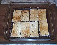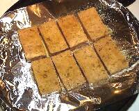 Ingredients: 1 block tofu, extra firmTeriyaki Marinade 1/3 cup soy sauce Mix the marinade ingredients together in a shallow dish. Drain and rinse the tofu. Slice it in 1/2-inch thick pieces. Place the tofu in the marinade. Let sit for about 30 minutes and then flip each piece over. Let sit another 30 minutes. Cover a baking sheet with foil. Lightly coat the foil with vegetable oil. Drain the tofu slices and place them on the foil. Place under a broiler at a distance of 6-8 inches for about 10 minutes or until slightly browned. Flip the pieces over and a broil the other sides. Serve hot. |